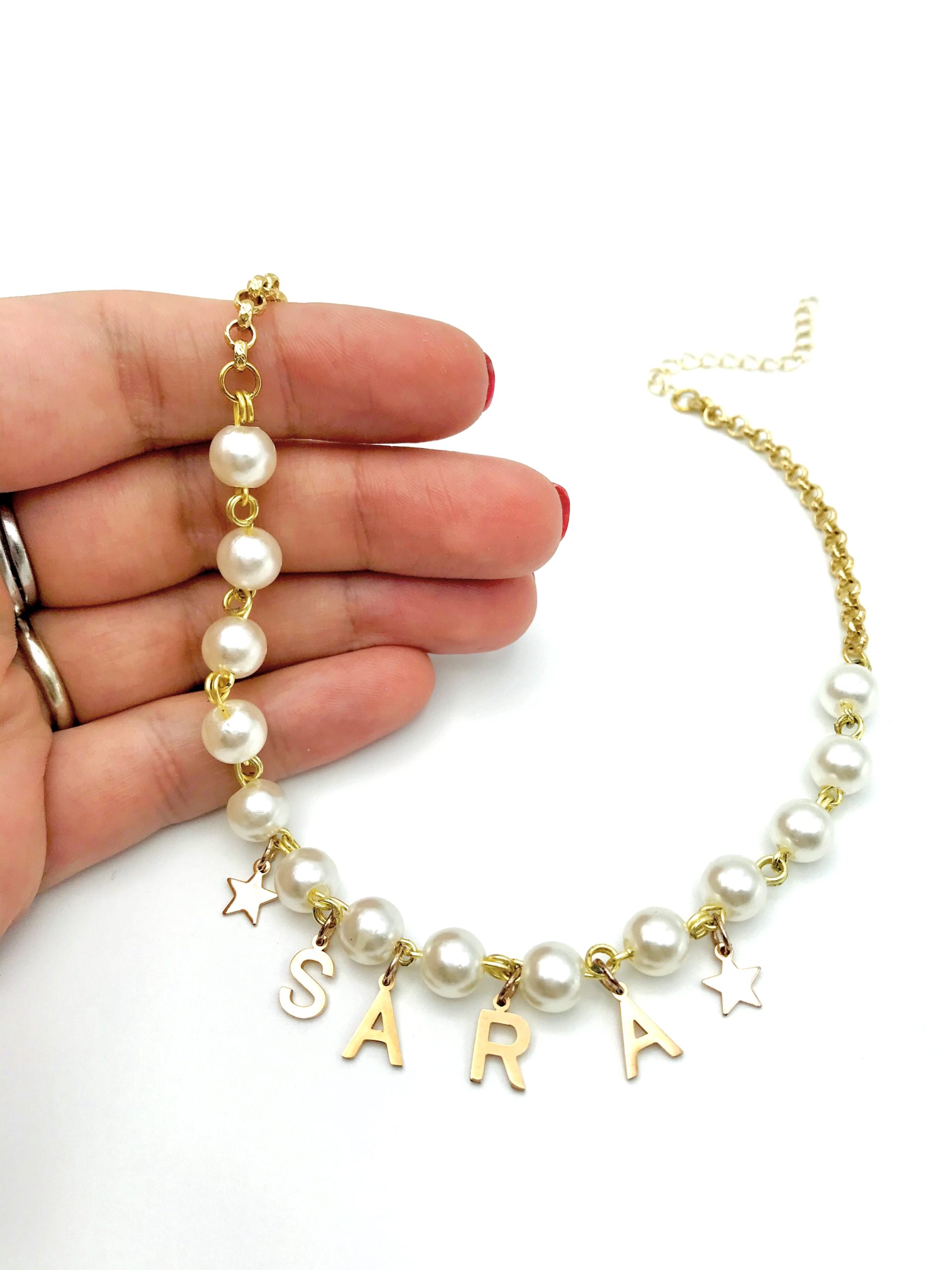 Choker di perle con nome e stelle