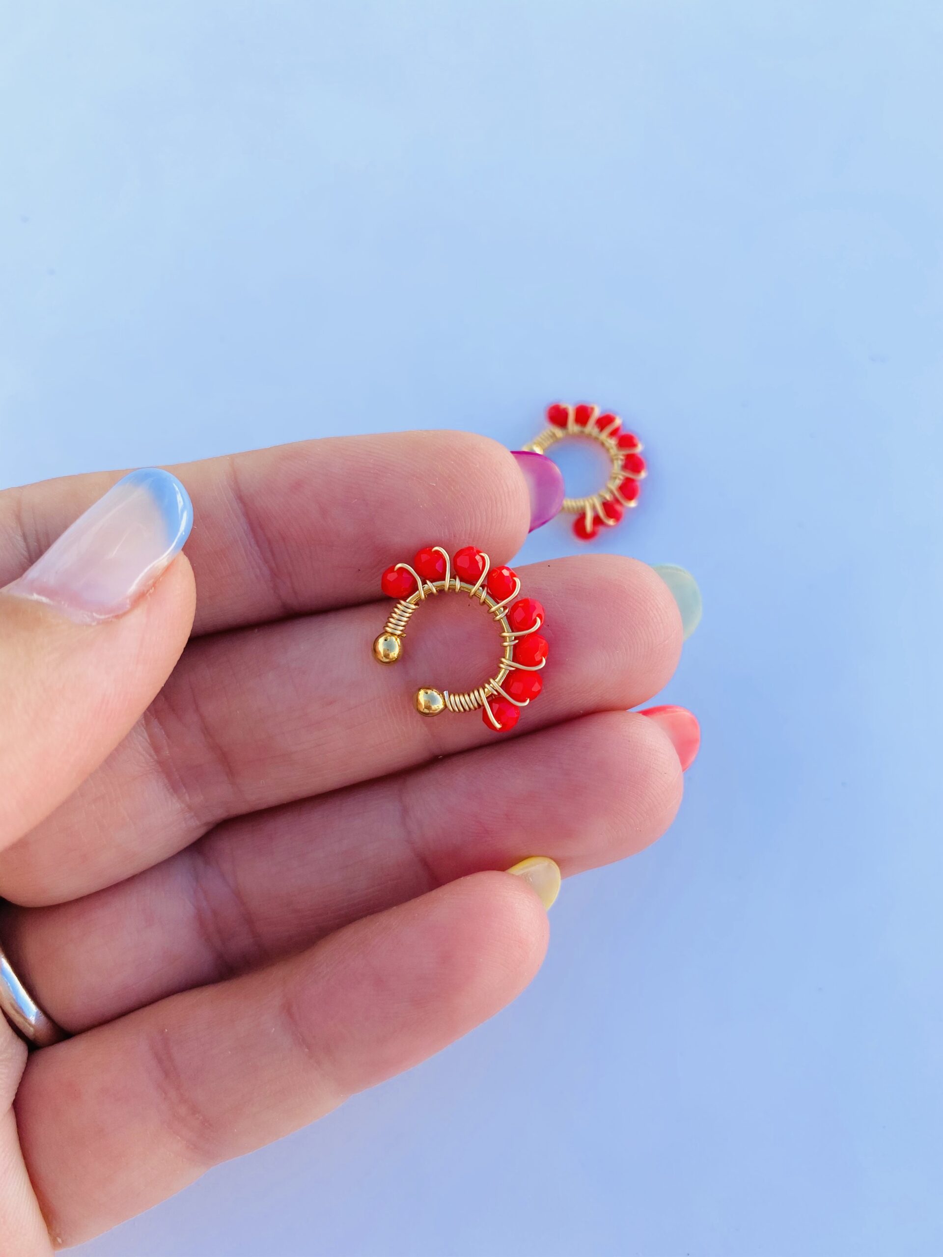 Ear Cuff con perline rosse
